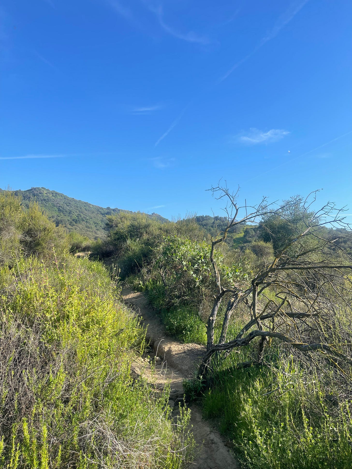 I slow down at the mouth of the trail to take in the mountain curves, the bird songs, and the wind that carries them. I take in the Chaparral sea and Cooper hawks as the California sun bears down on my skin. Raptors suspend like gods in the sky, and I’m enveloped in the living incense of sagebrush.